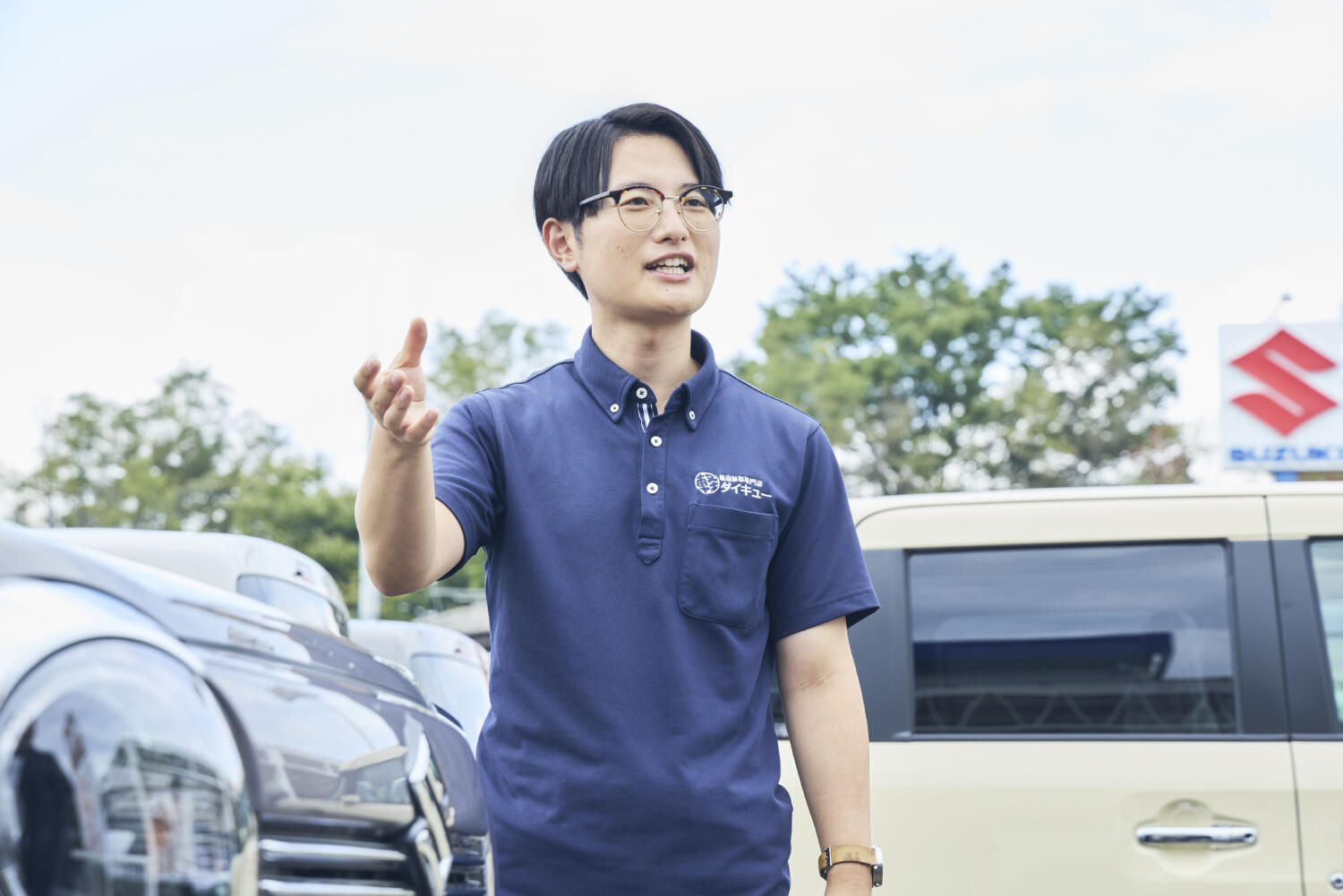 大学では理系分野を中心に就職活動をしていましたが、合同説明会で時間が空いたこともあり、車好きという理由で立ち寄ったのが大久自動車販売の説明会でした。